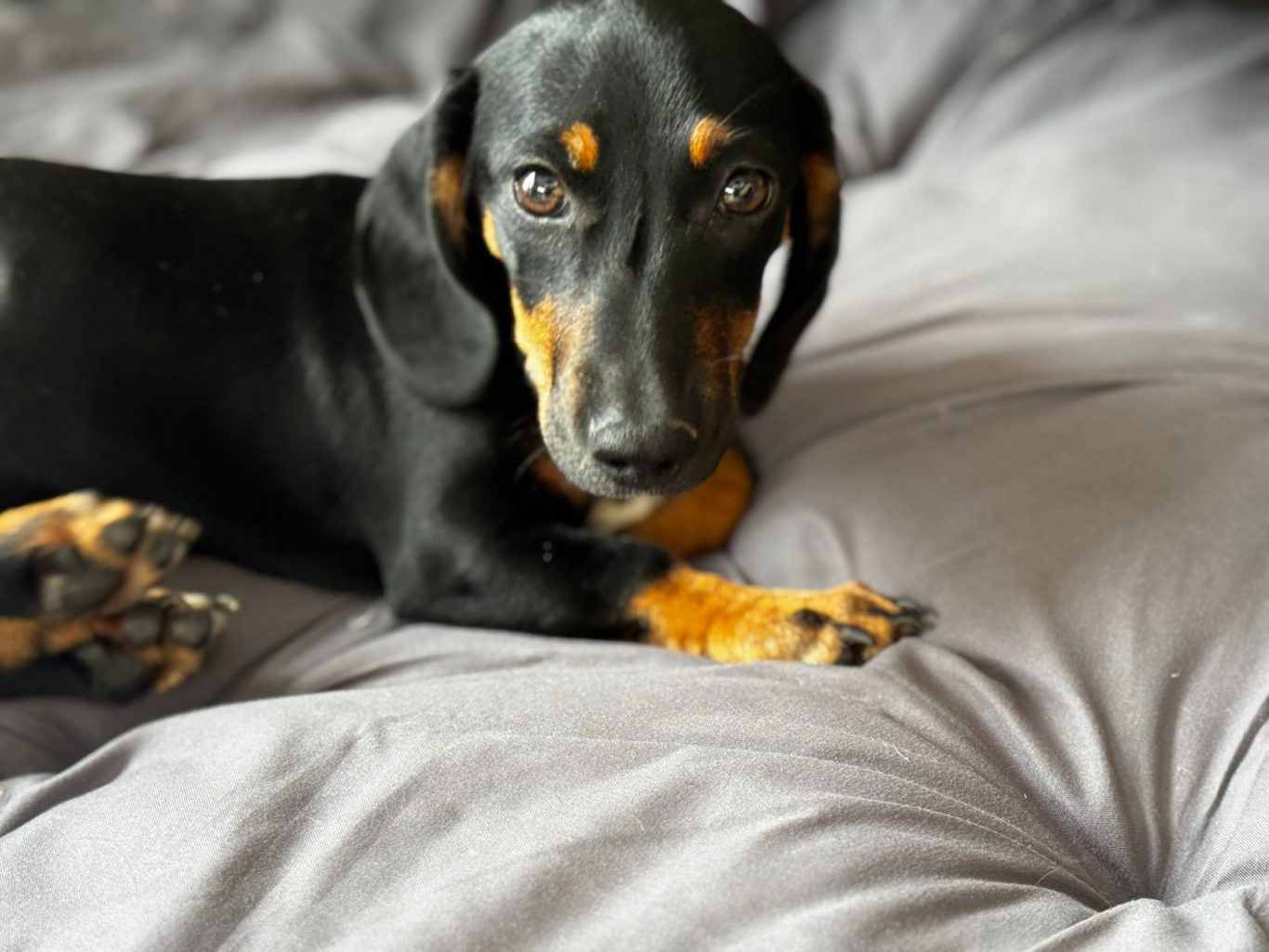 Und Maica arbeitet gerade fleißig daran, klarzumachen, dass ihr Platz natürlich im Bett ist – am liebsten mittendrin! Mit ihrem Charme und Dackelblick stehen die Chancen ziemlich gut, dass sie sich durchsetzt...