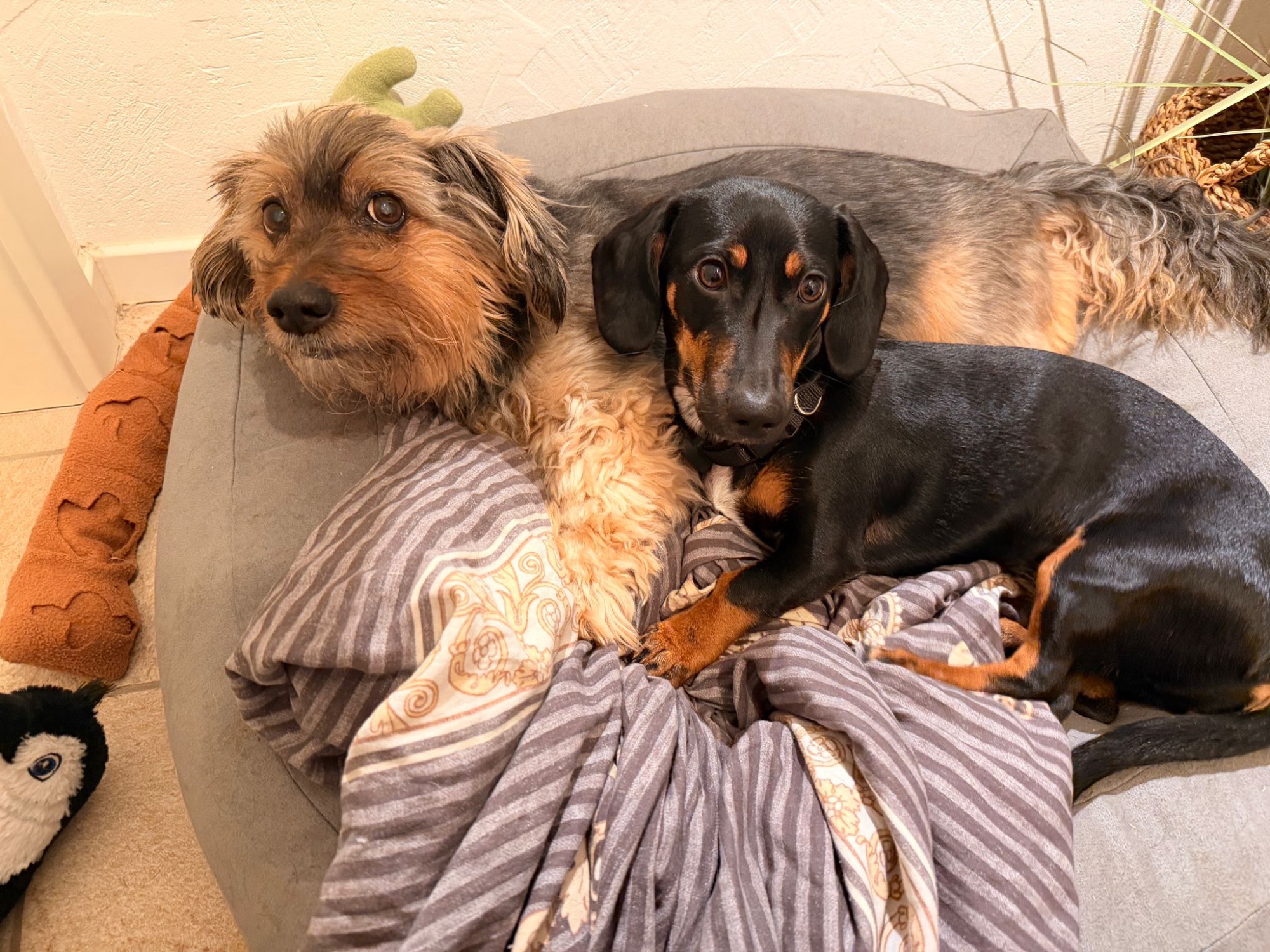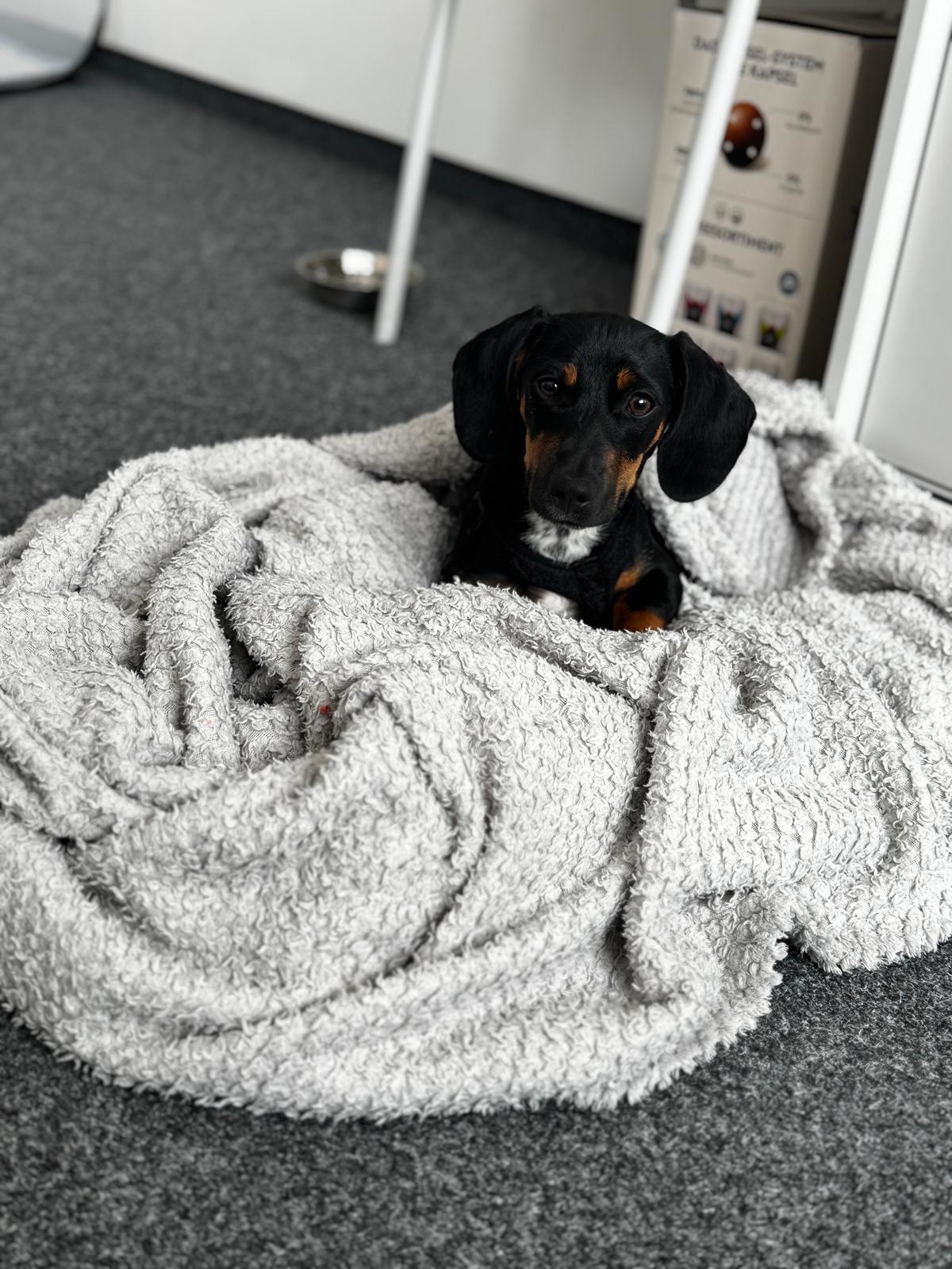 Und Maica arbeitet gerade fleißig daran, klarzumachen, dass ihr Platz natürlich im Bett ist – am liebsten mittendrin! Mit ihrem Charme und Dackelblick stehen die Chancen ziemlich gut, dass sie sich durchsetzt...