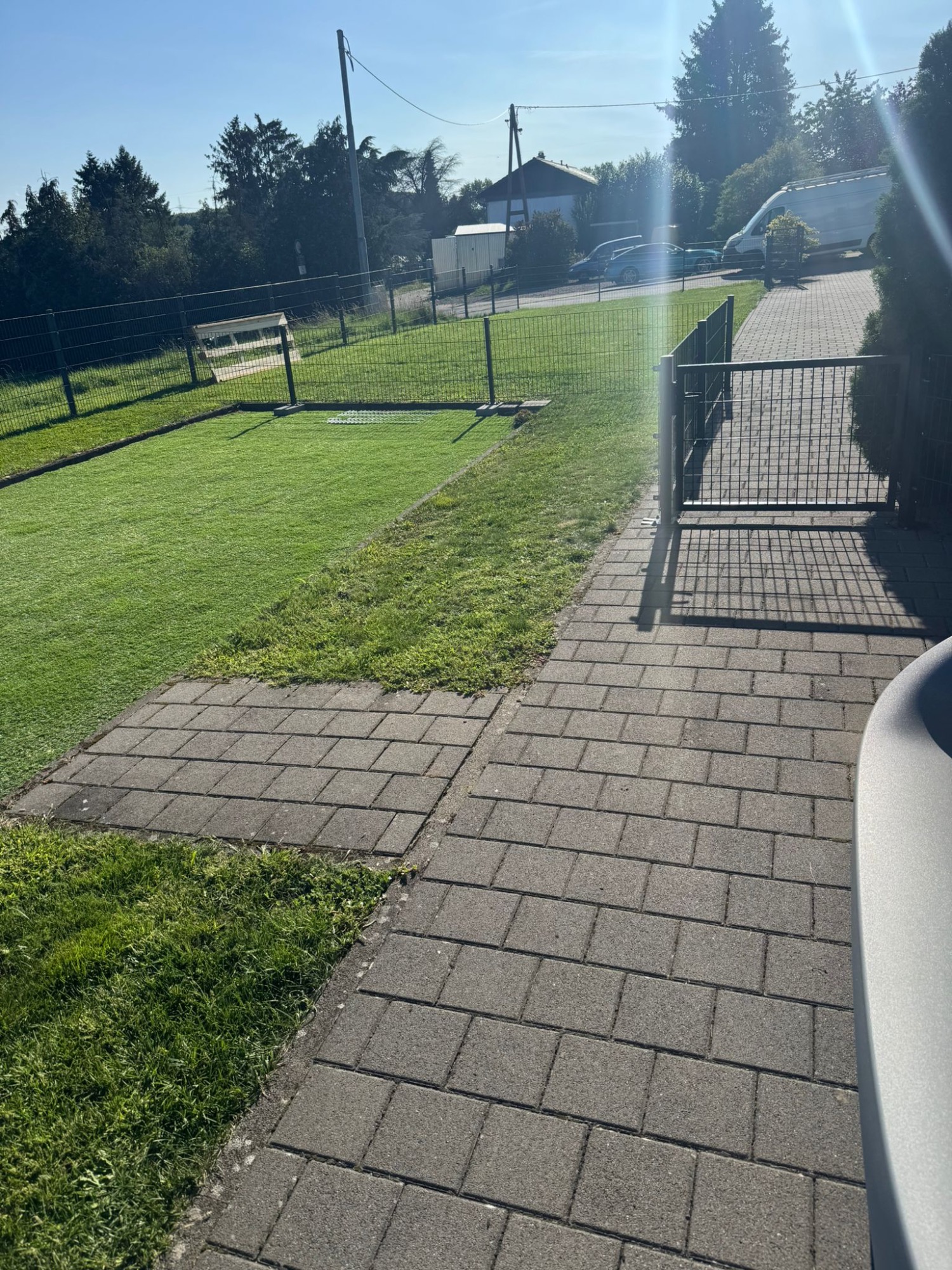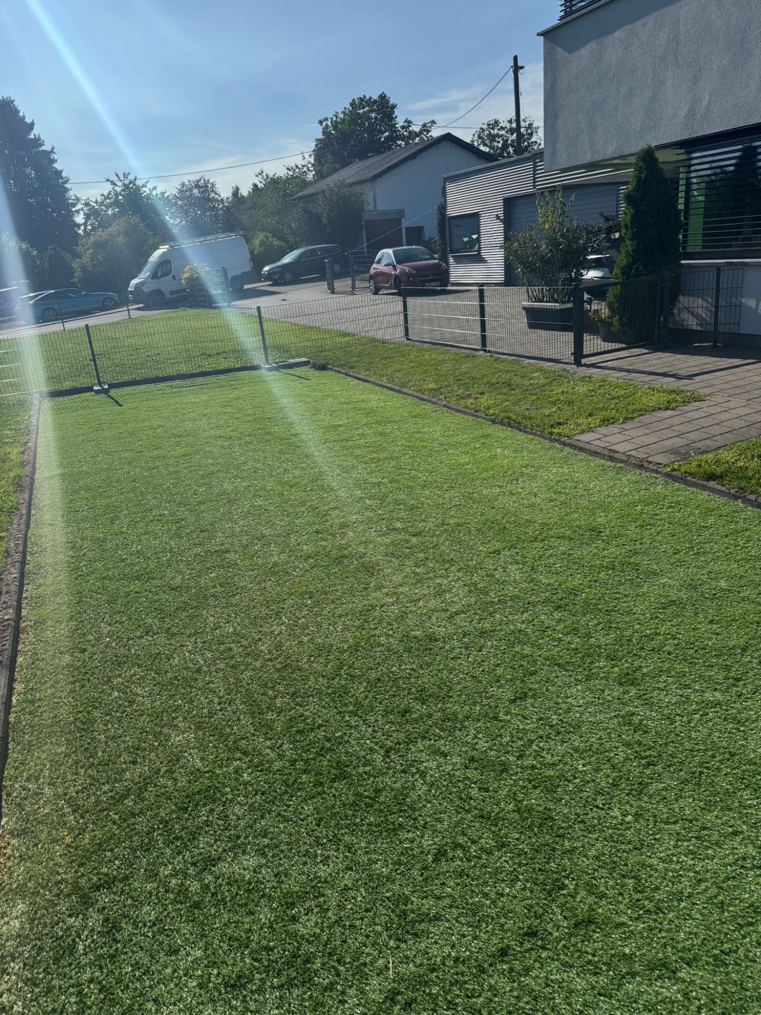 Zusätzlich wurde ein Zaun errichtet, der den Vorgarten vom hinteren Bereich trennt – so ist er stets sicher, selbst wenn Zusteller oder Besucher einmal vergessen, das Tor zu schließen.