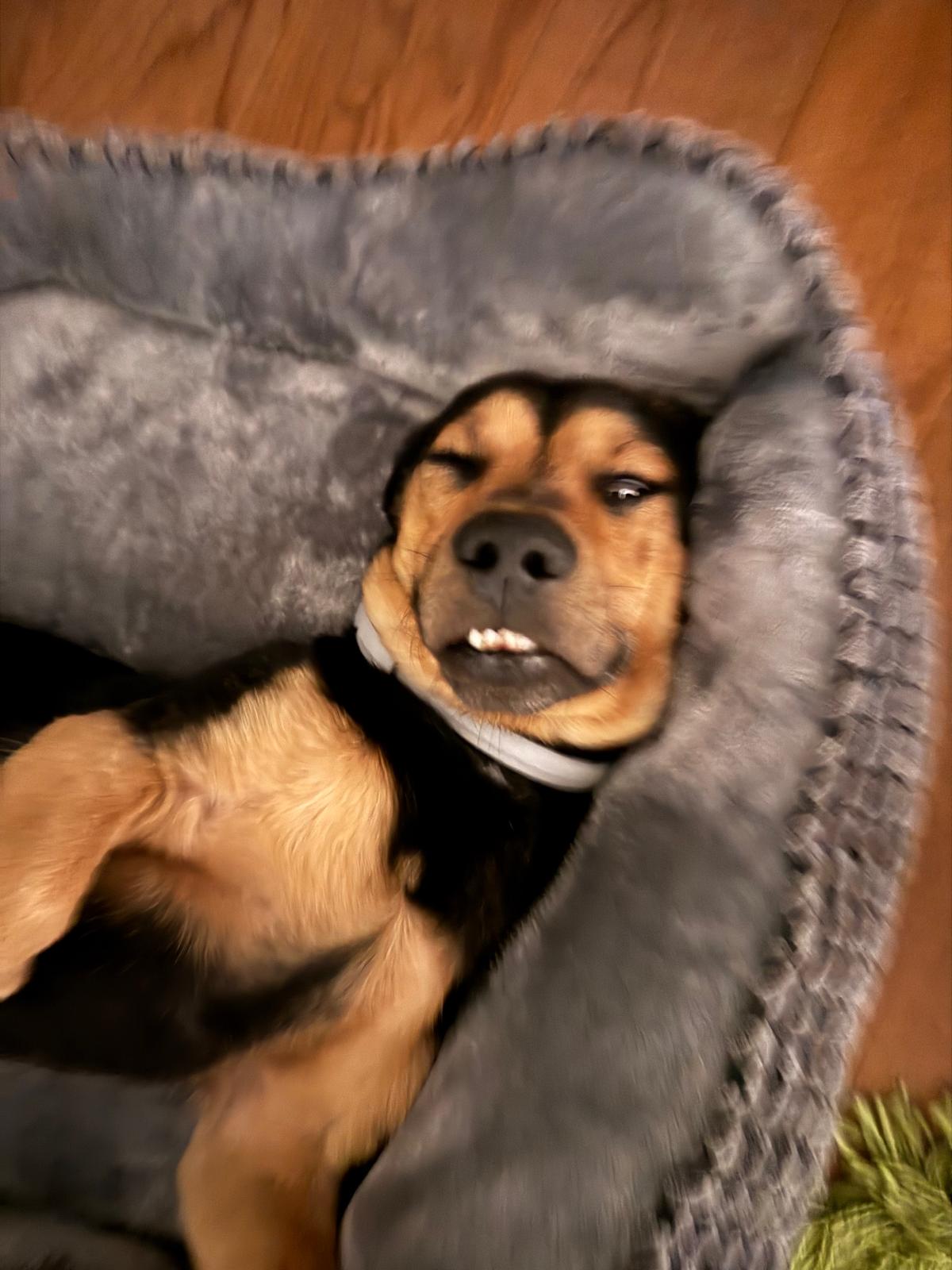 Sein Halter wollte ihn und einen weiteren Hund einschläfern lassen. Er wollte sie nicht mehr. Der Tierarzt hat sich zum Glück gewehrt und die Tierschützerin verständigt, die kam und die beiden aufnahm.