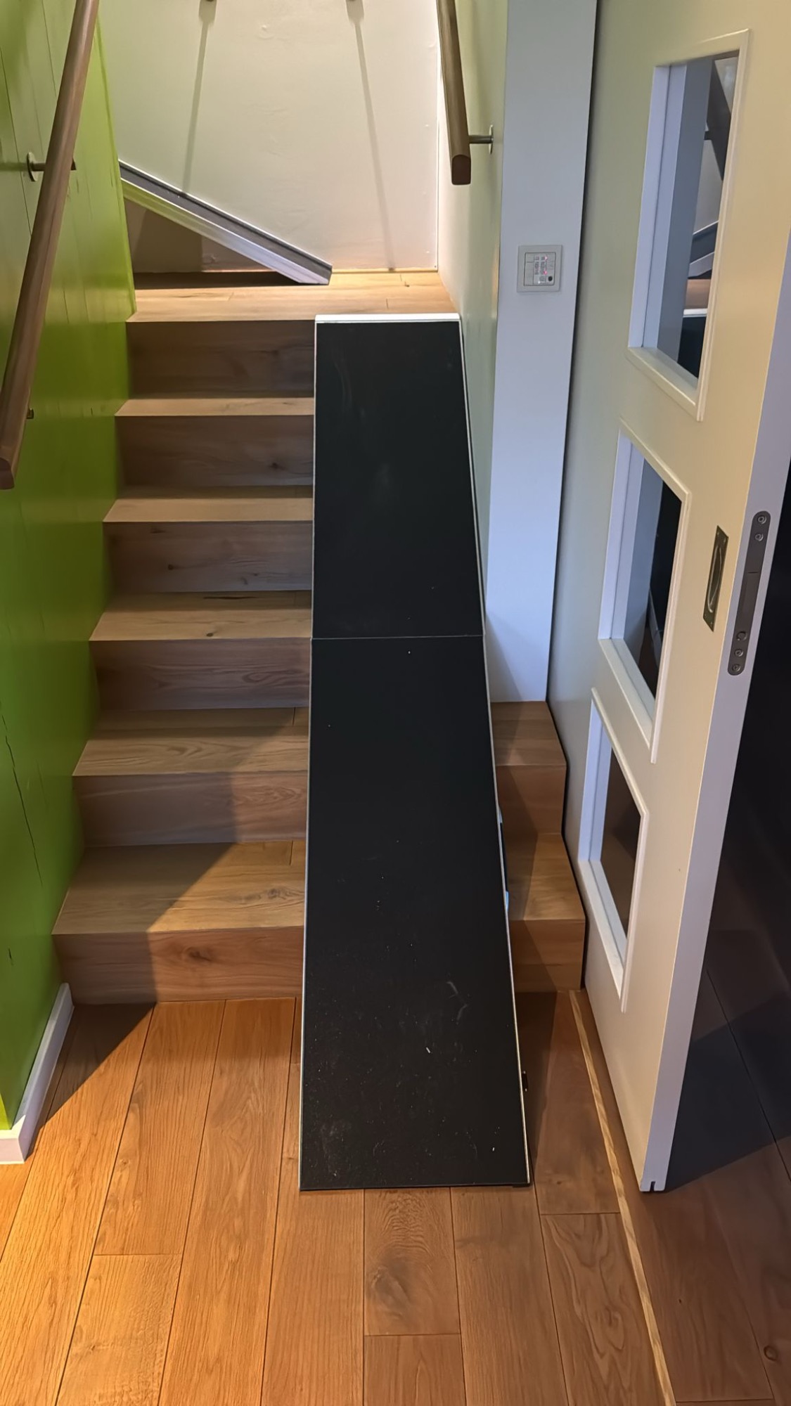 Im Haus gibt es nicht nur einen Aufzug, sondern auch eine liebevoll gebaute Dackelrampe, damit er sich frei und gelenkschonend bewegen kann.