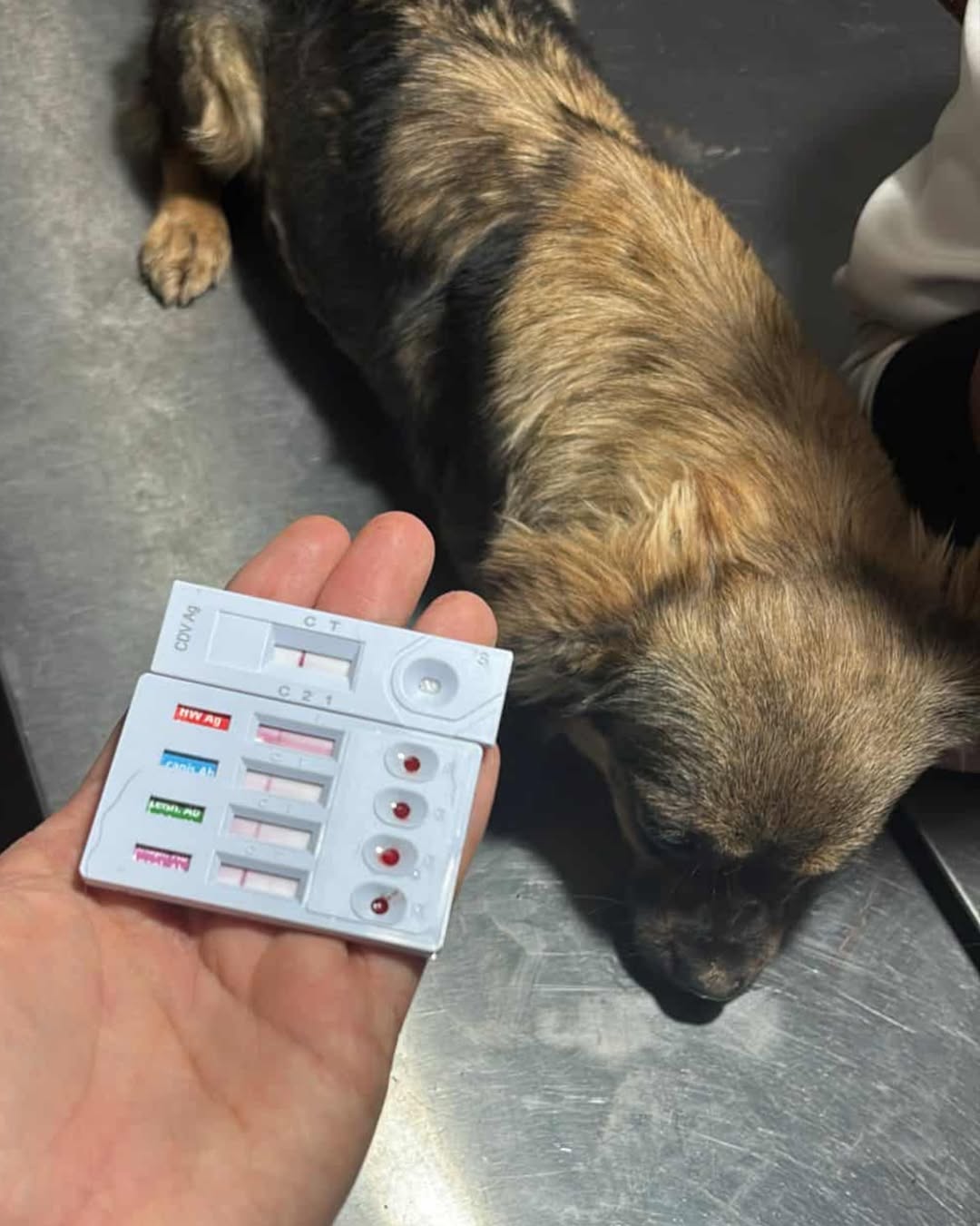 Leider zeigt der Test auch bei ihr eine leichte Anaplasmose. Es ist zwar nur eine schwache Linie und auf dem Foto fast nicht zu erkennen, aber sie ist da. Lumina bekommt eine 30tägige Antibiotikatherapie und wir hoffen, dass sie es danach überstanden hat und einer glücklichen, sorgenfreien Zukunft nichts im Wege steht.
