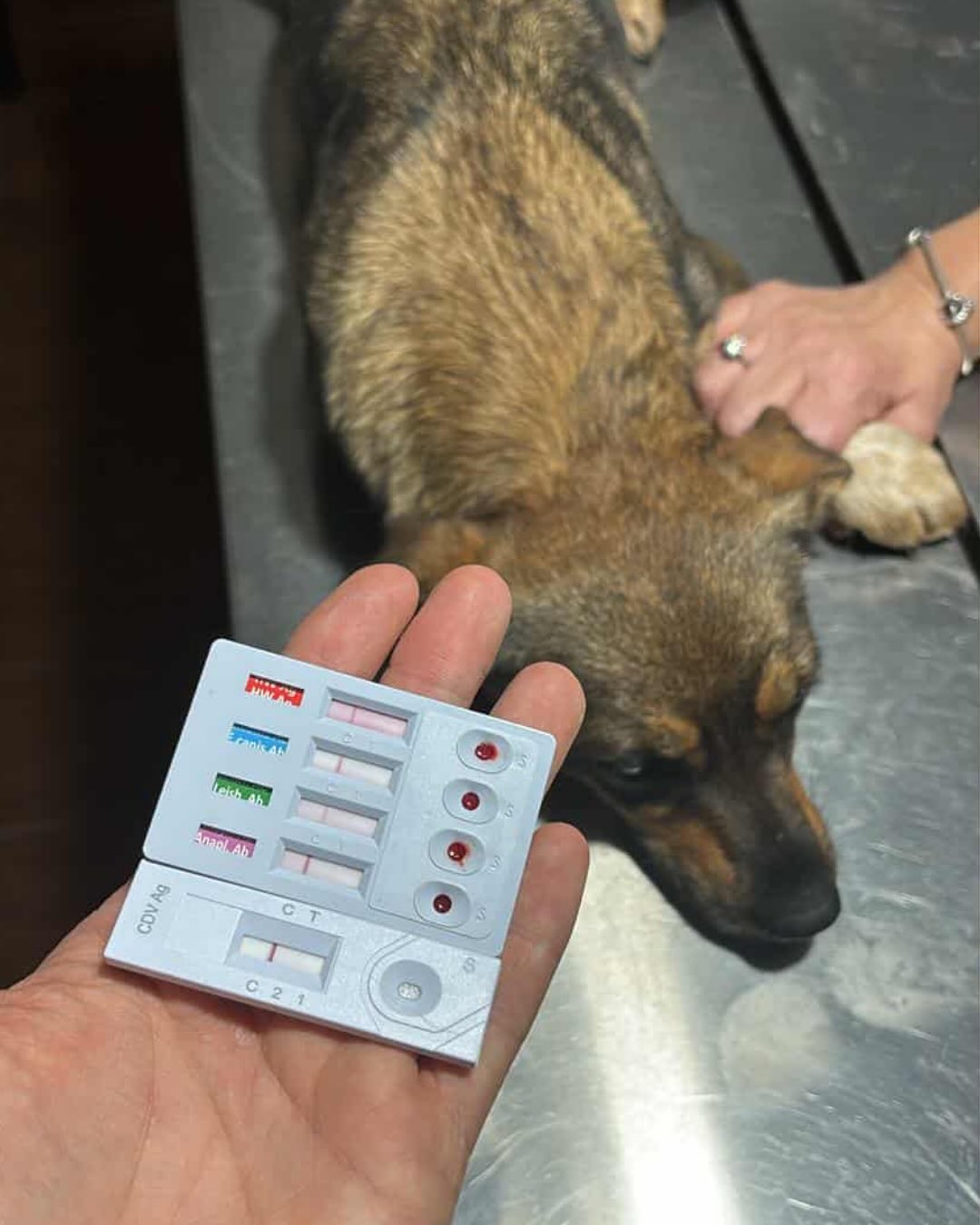 Zusätzlich zeigte der Test eine leichte Anaplasmose – eine schwache, aber deutliche Linie.